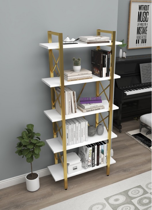 GOLD KİTAPLIK 5 Raflı Modern Kitaplık Metal Kitaplık Ev Ofis Rafı Dosya Kitap Rafı