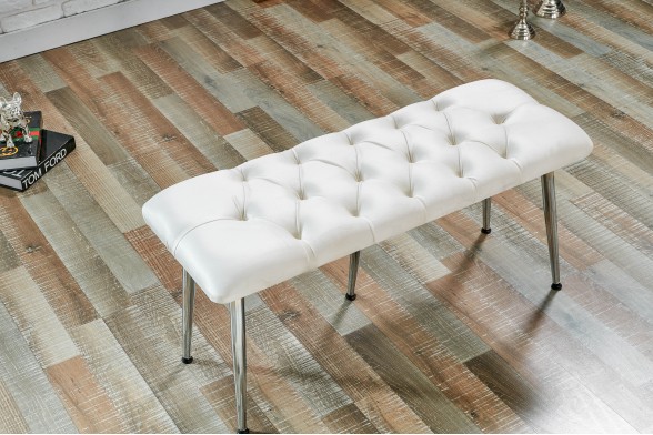 Krom Metal Sivriltme Ayaklı Babyface Puf & Bench & Oturak BEYAZ -SİVRİLTME-AYAKLI-BENCH